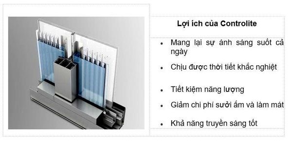 Hệ thống chiếu sáng thông minh Danpal Controlite sử dụng bảng điều khiển bằng tấm polycarbonate trong suốt, mờ với các cửa gió tích hợp, xoay có thể điều chỉnh vị trí của chúng suốt cả ngày để tối ưu hóa mức độ truyền ánh sáng ban ngày. Hệ thống tiên tiến này cho phép kiểm soát hoàn toàn cường độ ánh sáng trong nhà mong muốn tại bất kỳ thời điểm nào.