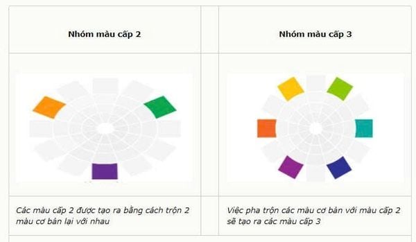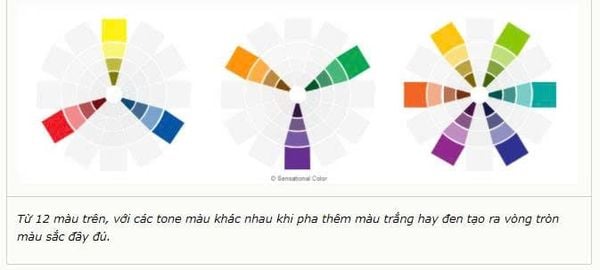 Vòng tròn màu sắc được cấu tạo từ 12 màu chủ đạo bao gồm các màu cơ bản,màu cấp 2, màu cấp 3 hoặc mở rộng hơn theo quy tắc khi cần lượng màu phong phú hơn.
