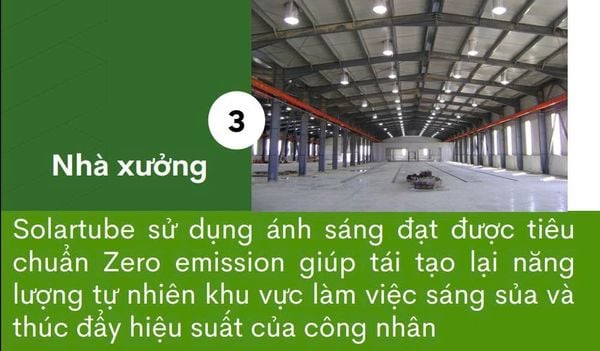 + Xưởng Công nghiệp: Trong không gian làm việc, solar tube skylight giúp tạo môi trường làm việc tốt hơn và giảm chi phí năng lượng.